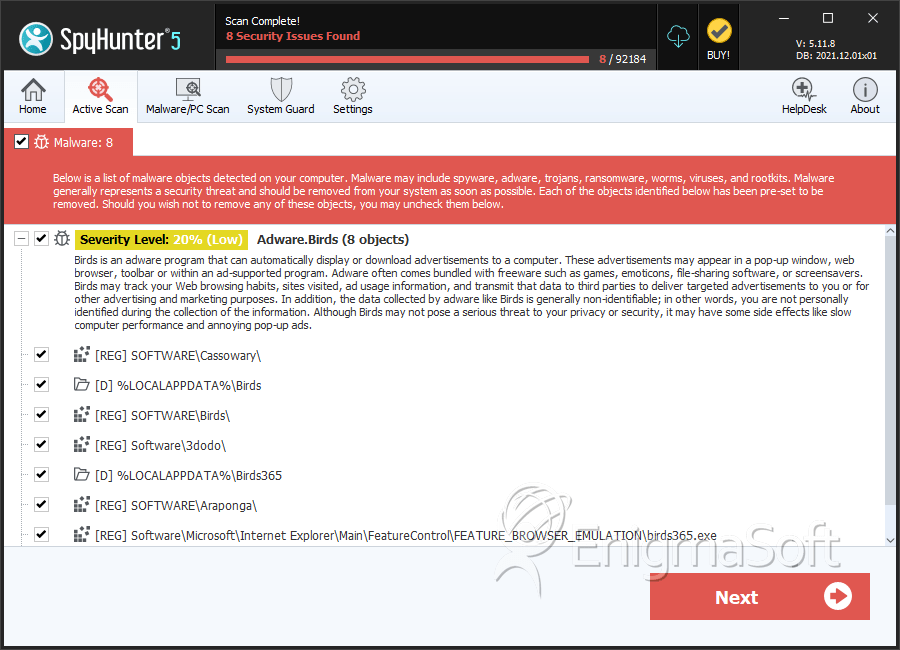 SpyHunter Detects & Remove Adware.Birds