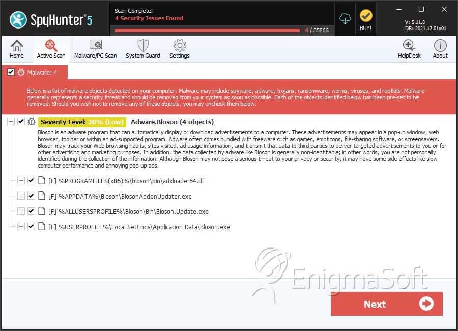 | 4. | Bloson.exe | b2acec574bd5d968a9bfbb4fb923d2d8 | 1 |