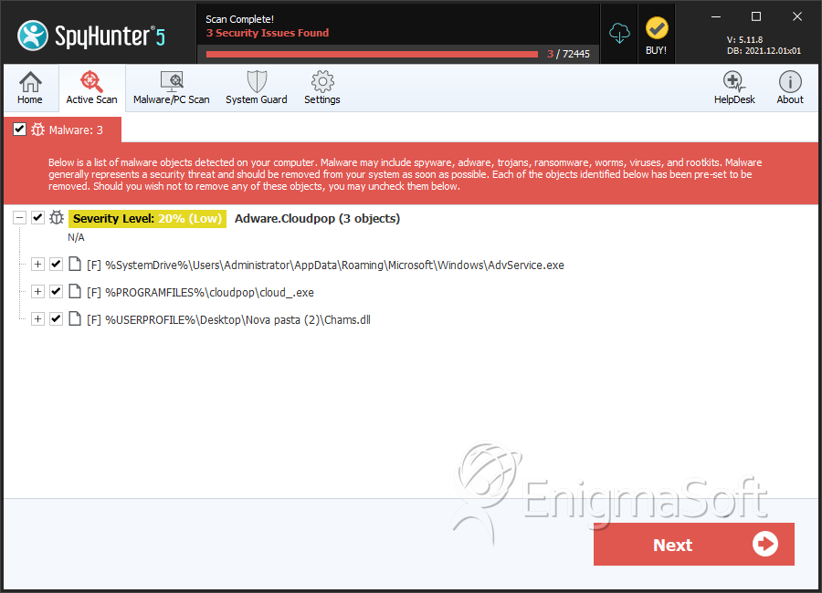 SpyHunter Detects & Remove Adware.Cloudpop
