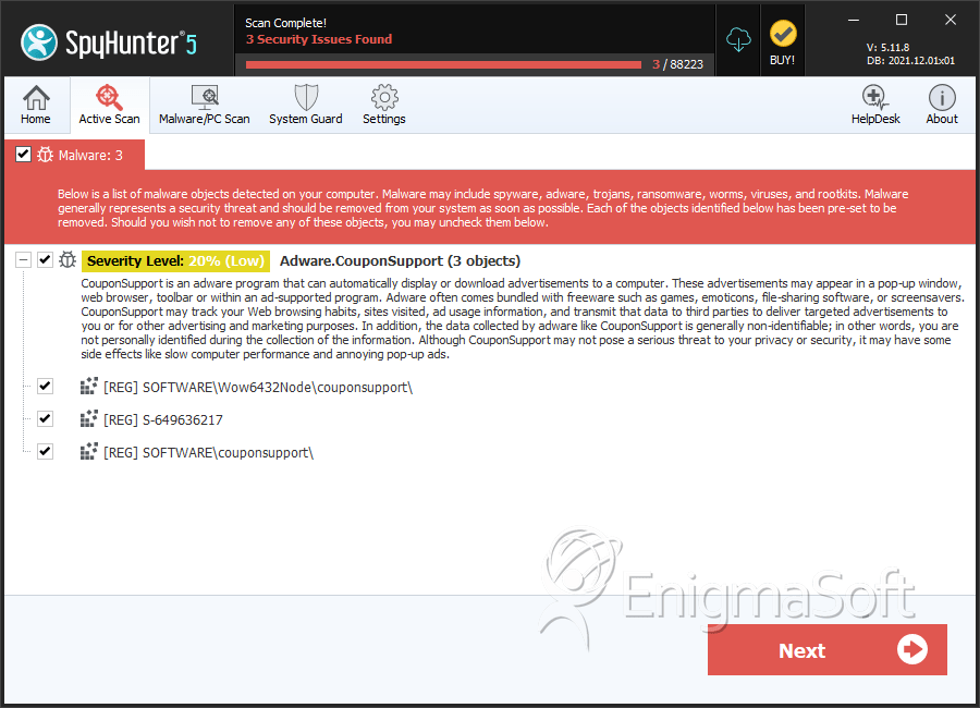 EnigmaSoft Threat Scorecards are assessment reports for different malware threats which have been collected and analyzed by our research team. EnigmaSoft Threat Scorecards evaluate and rank threats using several metrics including real-world and potential risk factors, trends, frequency, prevalence, and persistence. EnigmaSoft Threat Scorecards are updated regularly based on our research data and metrics and are useful for a wide range of computer users, from end users seeking solutions to remove malware from their systems to security experts analyzing threats.