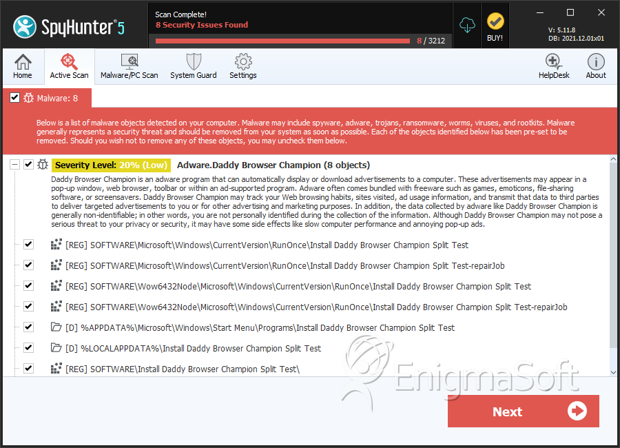 SpyHunter Detects & Remove Adware.Daddy Browser Champion