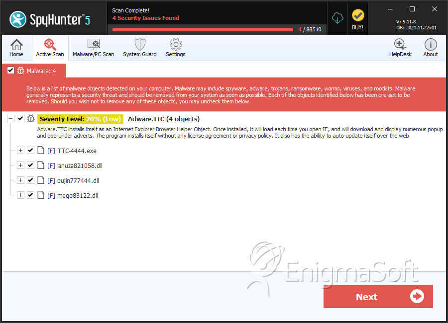 EnigmaSoft Threat Scorecards are assessment reports for different malware threats which have been collected and analyzed by our research team. EnigmaSoft Threat Scorecards evaluate and rank threats using several metrics including real-world and potential risk factors, trends, frequency, prevalence, and persistence. EnigmaSoft Threat Scorecards are updated regularly based on our research data and metrics and are useful for a wide range of computer users, from end users seeking solutions to remove malware from their systems to security experts analyzing threats.