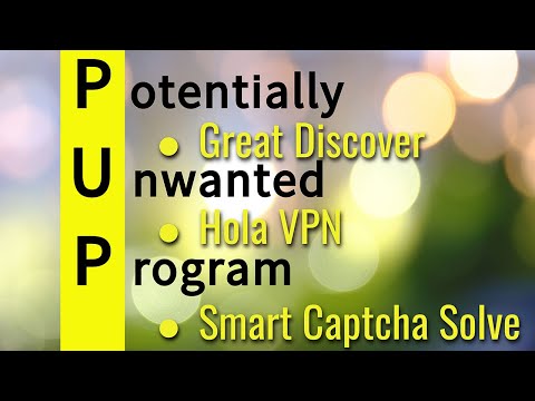 Този епизод обсъжда следните теми: Как „ Great Discover " и „ Hola VPN " са потенциално нежелани програми, които биха могли да изобразят няколко нежелани изскачащи прозорци и да изпълняват съмнителни функции. Също така, " Smart Captcha Solve " задейства изобилие от измамни изскачащи съобщения и известия, вместо да предлага използваема услуга.