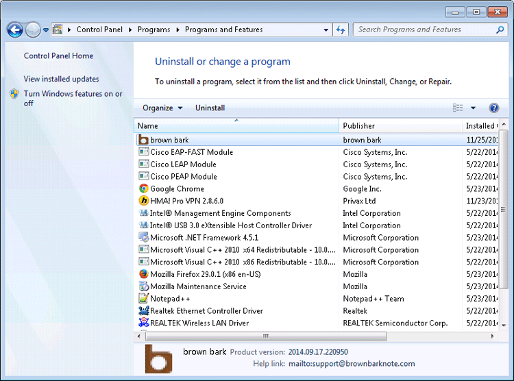 Brown Bark is an adware application that may lead to loading of advertisements through web browsers. The Brown Bark advertisements may be intrusive where they tend to display pop-ups or banners that try to offer various products or services through the internet. Use of the Brown Bark ads is known to cause redirects to other sites or pages that have questionable content. Through those other sites computer users may encounter unwanted actions on their system that lead to downloads of questionable files or installation of other programs that may end up being malicious. It the interest of stopping the Brown Bark ads on a system it is best to detect Brown Bark and its components and remove them using an antispyware application.