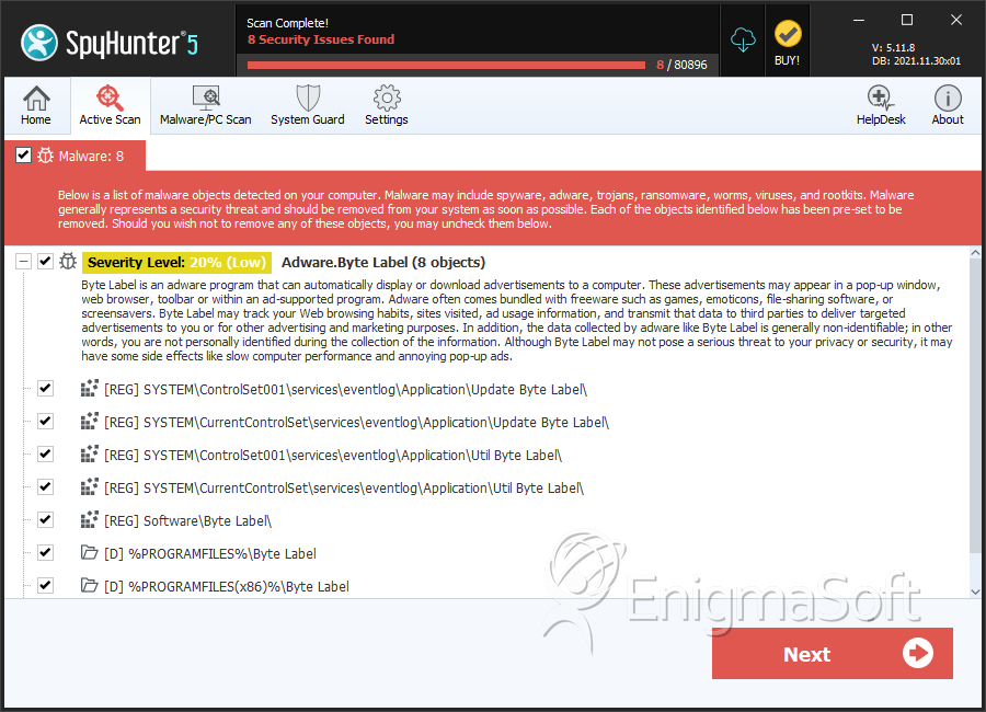 SpyHunter Detects & Remove Byte Label