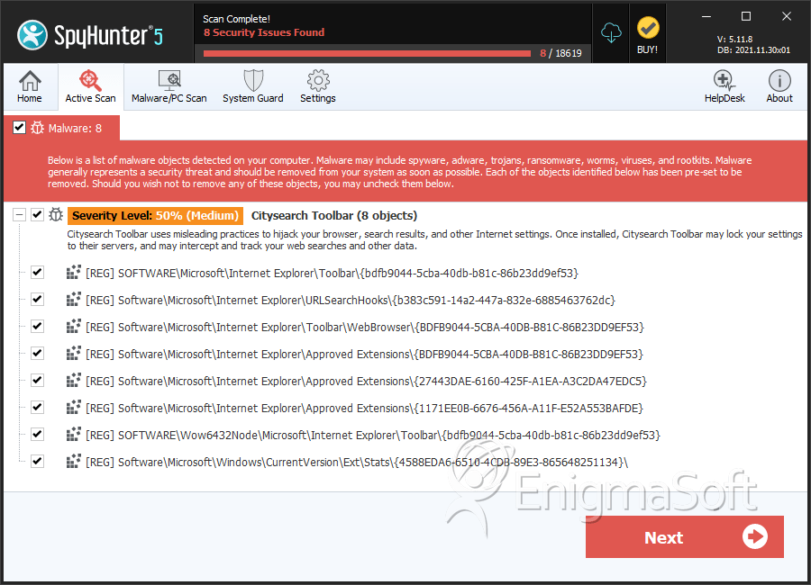 SpyHunter Detects & Remove Citysearch Toolbar