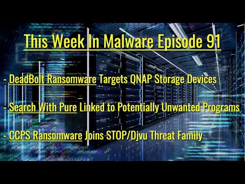 Denne episode diskuterer følgende emner: Hvordan DeadBolt Ransomware retter sig mod QNAP-lagerenheder, hvordan " Search with Pure " er knyttet til potentielt uønskede programmer, og CCPS Ransomware- truslen slutter sig til STOP/Djvu -trusselfamilien for at afpresse penge fra ofre computerbrugere.