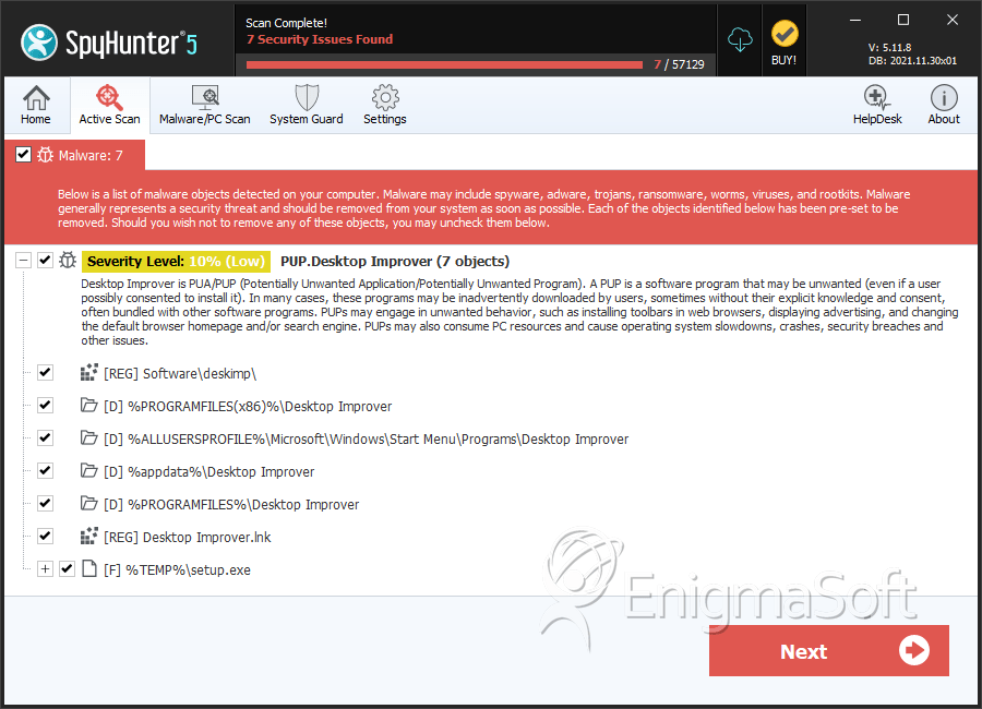 SpyHunter Detects & Remove Desktop Improver Ads