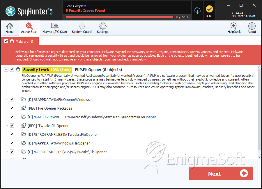 SpyHunter Detects & Remove FileOpener