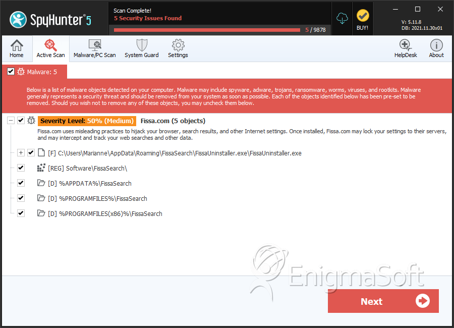 SpyHunter Detects & Remove Fissa