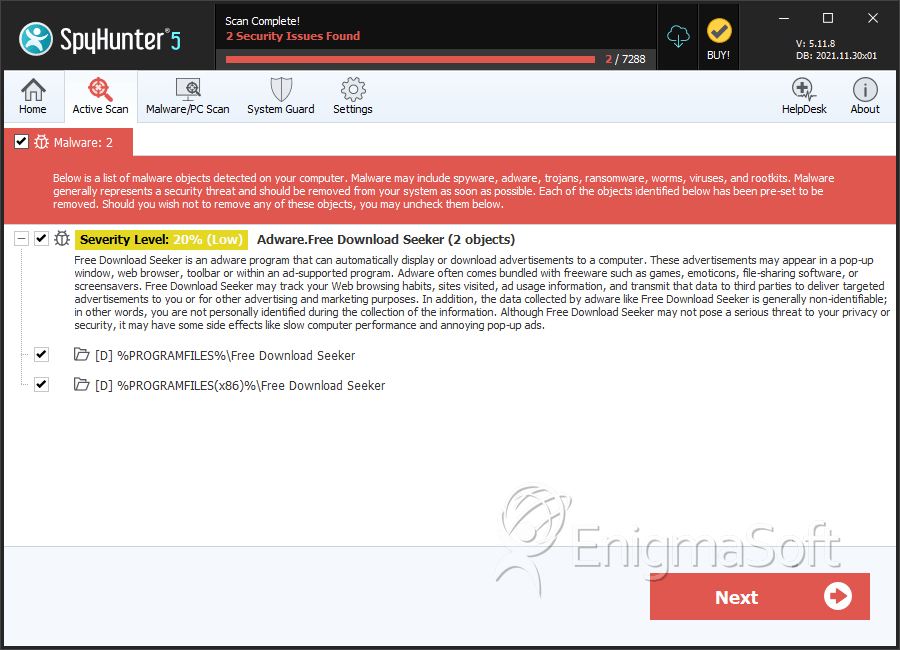 SpyHunter Detects & Remove Free Download Seeker Ads