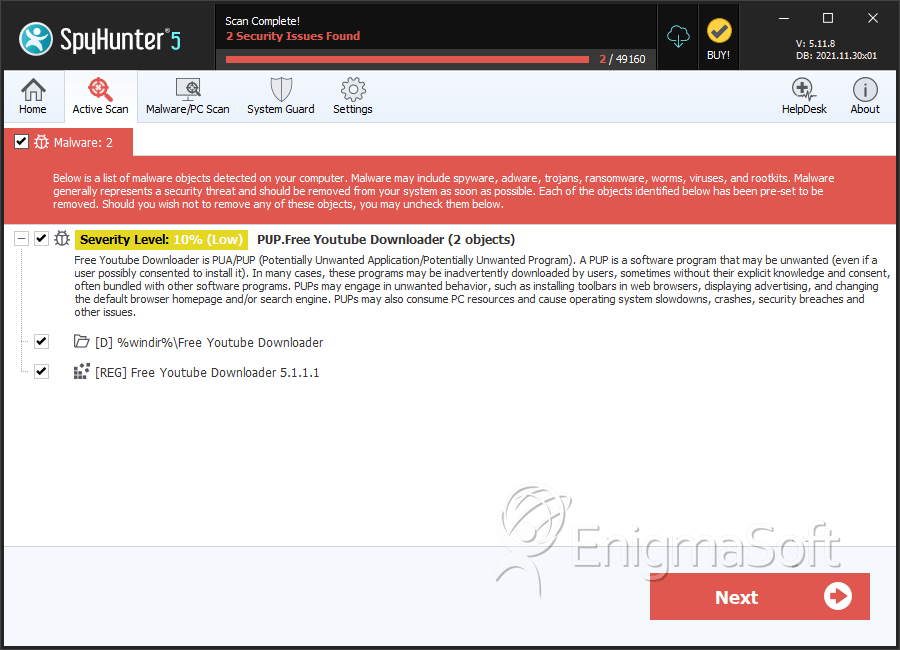 SpyHunter Detects & Remove Free Youtube Downloader