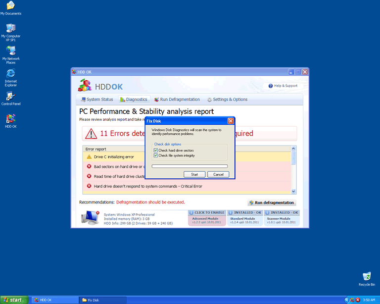 HDD Ok is a rogue system optimization and defragmentation tool from the same family as HDD Fix and MyDisk. Surreptitious Trojans install HDD Ok onto user's computers without their permission or knowledge. Once inside a system, HDD Ok will fill the desktop with error messages and warnings stating that the system hard drive and CPU have issues that can only be resolved by the full version of HDD Ok. HDD Ok may also affect other programs on the system and block a user's access to them. Do not believe any of the error messages by HDD Ok; it is best to ignore them and have this rogue removed from your PC as soon as possible.![]()