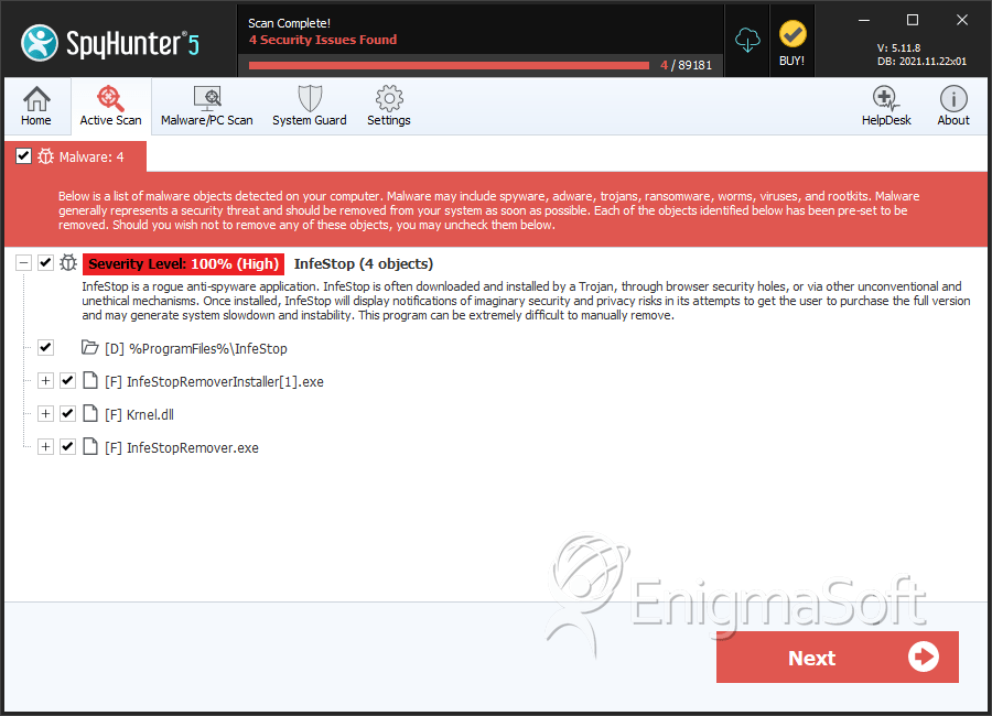 SpyHunter Detects & Remove InfeStop