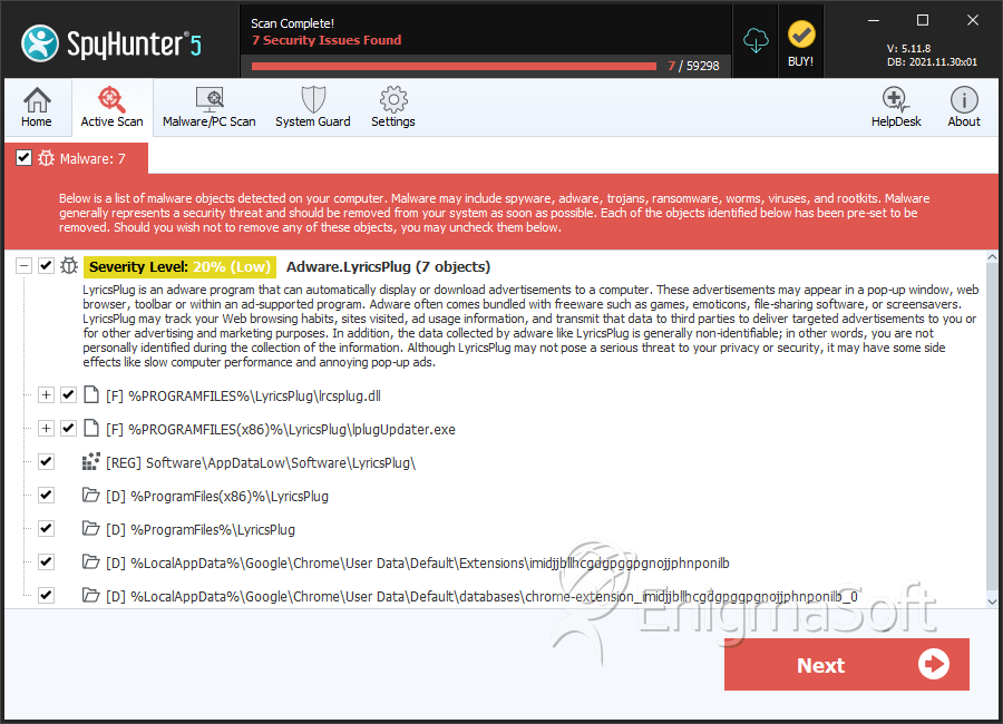 SpyHunter Detects & Remove LyricsPlug