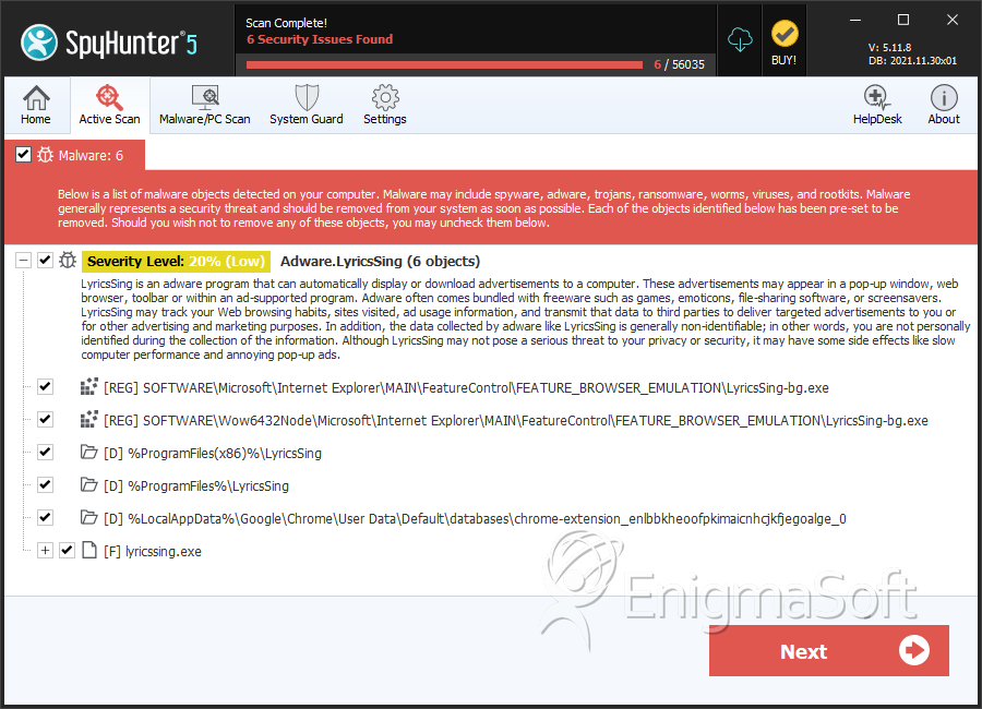 SpyHunter Detects & Remove LyricsSing