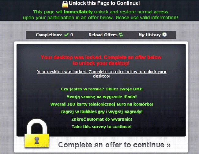 'Unlock this Page to Continue!' Virus 'Unlock this Page to Continue!' Virus is a computer threat that is known for blocking access to a system through an alert message where it makes bogus claims of the system being infected with a serious virus. Computer users are often forced into paying a fee through Ukash or other e-money systems to unlock the threat and allow use of the system. Read more |