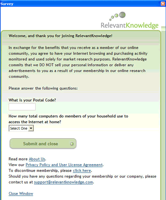 RelevantKnowledge RelevantKnowledge is an adware threat that may have features of spyware where it could load on a system without permission from the computer user. Once loaded, RelevantKnowledge could render unwanted notifications and messages that attempt to gather information on the computer user or promote certain services that may be borderline malicious. Read more |