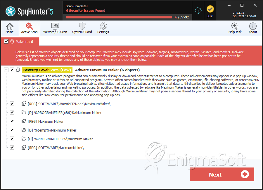 The Maximum Maker browser add-on is supposed to boost your potential to the max but does not say how it does it. You may want to know what security researcher have to say about the Maximum Maker add-on. The Maximum Maker add-on is classified as adware that will boost your potential to receive numerous advertisements from legitimate and not so legitimate sources. The Maximum Maker adware will push coupons, discounts, banners, special deals, limited time offers and shopping recommendations. The Maximum Maker adware may use pop-up and pop-under windows to welcome users to install software such as Mr. PC Cleaner and Shield Plus Cleaner Utility. The aforementioned programs provide only tools already present in modern versions of Windows and may slow down your PC and urge you to purchase a premium account to solve your registry problems. As stated above, the Maximum Maker adware may display corrupted ads, and it is not advisable to click on its advertisements. Security analysts note that Maximum Maker comes from SuperWeb, LLC. that develop adware such as Common Dots and Computer Pal and will use DOM storage data, tracking cookies and read your browsing history to show personalized promotional materials. Additionally, the Maximum Maker adware may change your homepage and default search provider to Eminentsearchsystem.com to earn affiliate revenue and redirect your web traffic. The Maximum Maker adware may write a registry entry in Windows to start when you log on and may automatically load a video commercial in your browser. You may want to use a reliable anti-spyware instrument to eradicate the Maximum Maker adware from your machine.