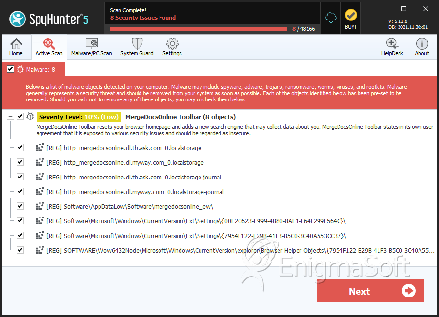 SpyHunter Detects & Remove MergeDocsOnline Toolbar
