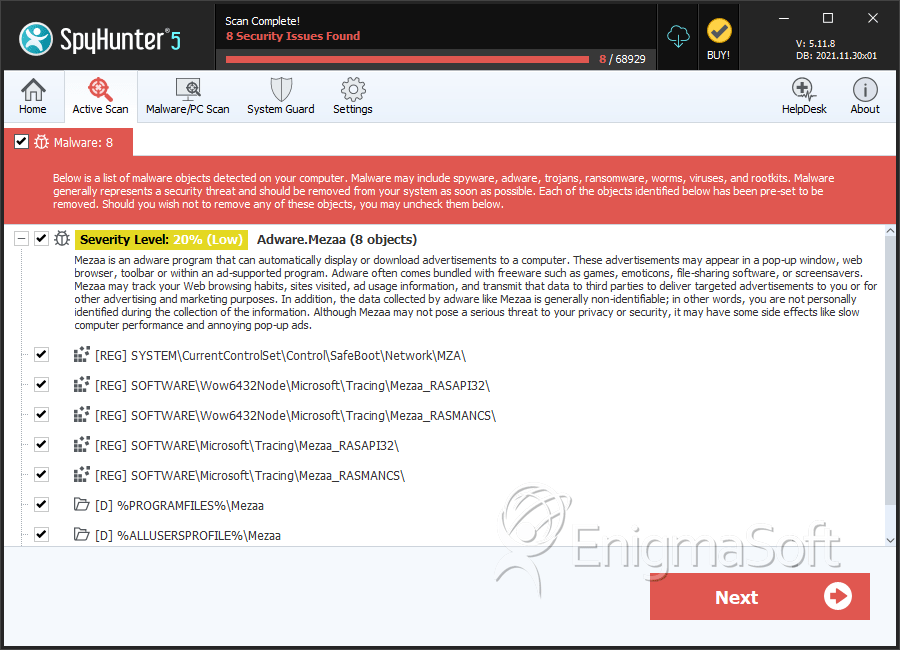 SpyHunter Detects & Remove Mezaa