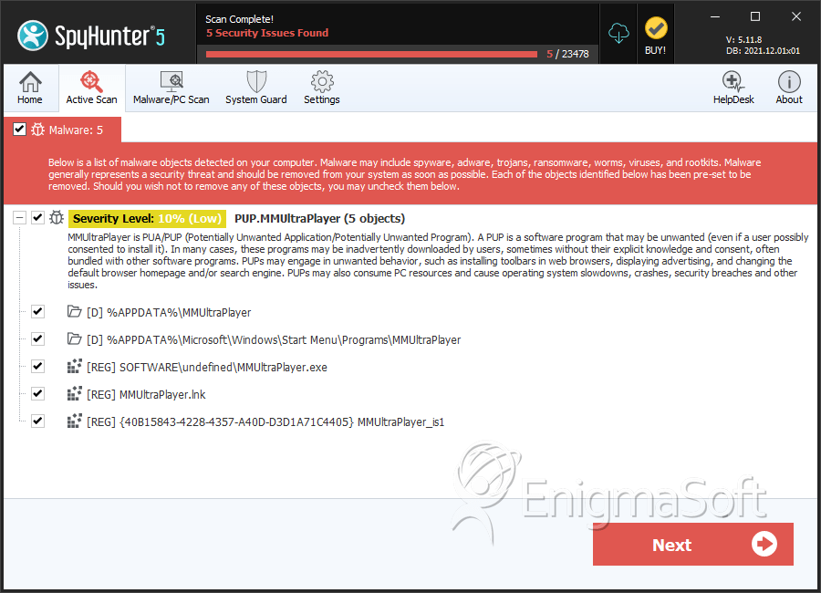 SpyHunter Detects & Remove MMUltraPlayer