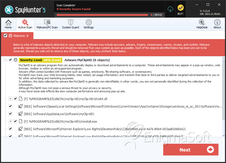 MyClipHD is adware that may show annoying pop-up advertisements, messages and banners in a Web browser when a computer user is visiting a variety of suspicious websites that might have been produced for commercial intentions. The MyClipHD advertisements may signify that a computer system is contaminated with adware or a potentially unwanted program. MyClipHD may proliferate and infiltrate into the computer system through packaged numerous freeware, which computer users can download and install from unidentified download websites on the Internet. Free applications may often carry numerous other software, which may be not necessary for the computer user. Once installed, the MyClipHD browser plug-in may highlight words on the websites changing them into hyperlinks. These MyClipHD links may be added within the text, and may come with a double underline to differentiate them from usual links.