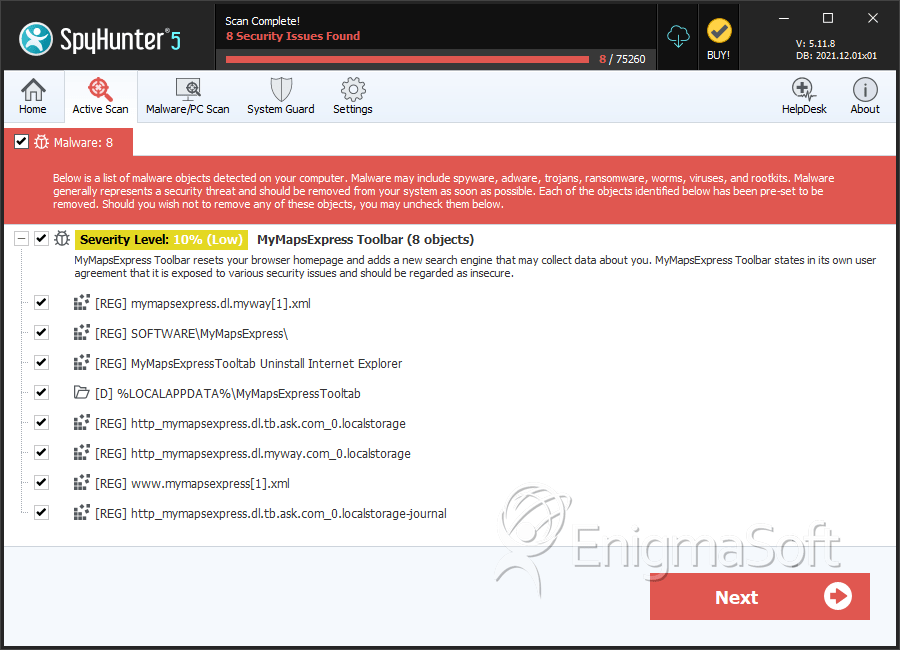 SpyHunter Detects & Remove MyMapsExpress Toolbar