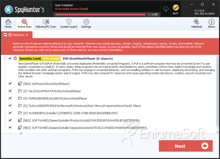 SpyHunter Detects & Remove NowUSeeIt Player