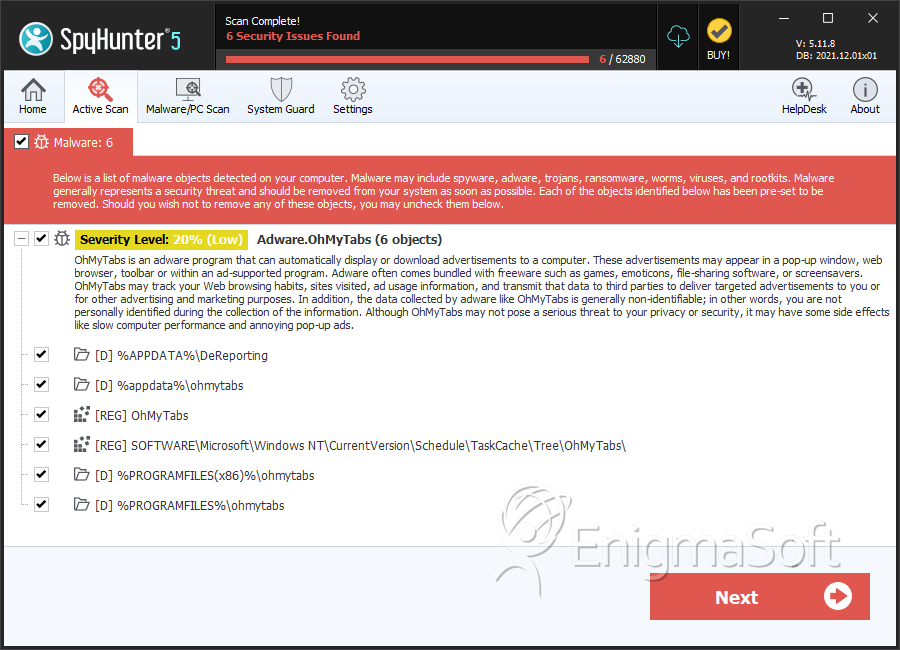 SpyHunter Detects & Remove OhMyTabs Ads