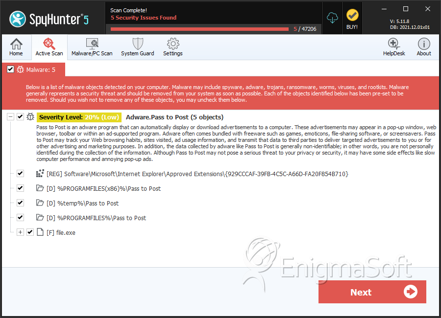 EnigmaSoft Threat Scorecards are assessment reports for different malware threats which have been collected and analyzed by our research team. EnigmaSoft Threat Scorecards evaluate and rank threats using several metrics including real-world and potential risk factors, trends, frequency, prevalence, and persistence. EnigmaSoft Threat Scorecards are updated regularly based on our research data and metrics and are useful for a wide range of computer users, from end users seeking solutions to remove malware from their systems to security experts analyzing threats.