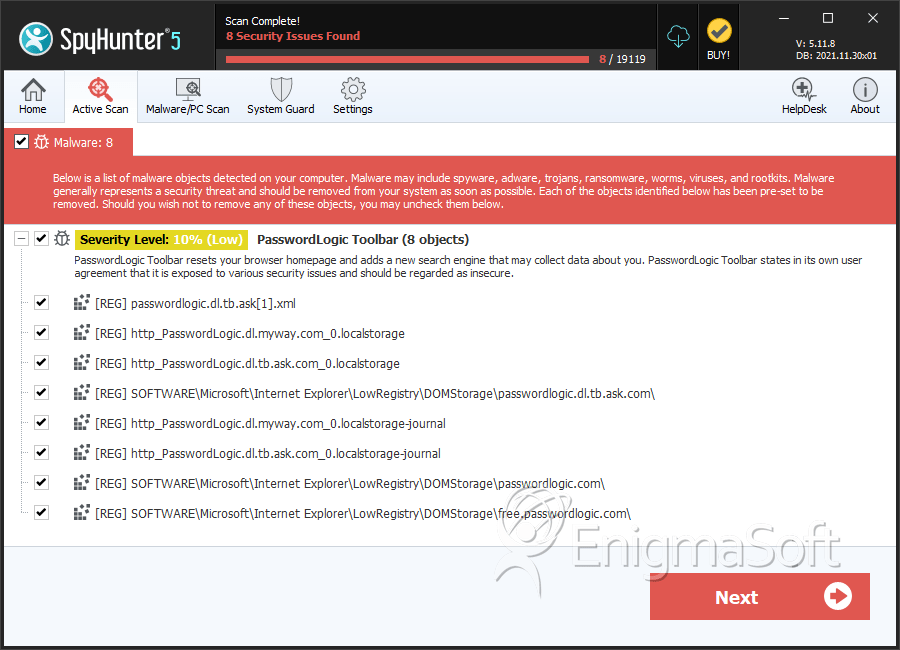 SpyHunter Detects & Remove PasswordLogic Toolbar
