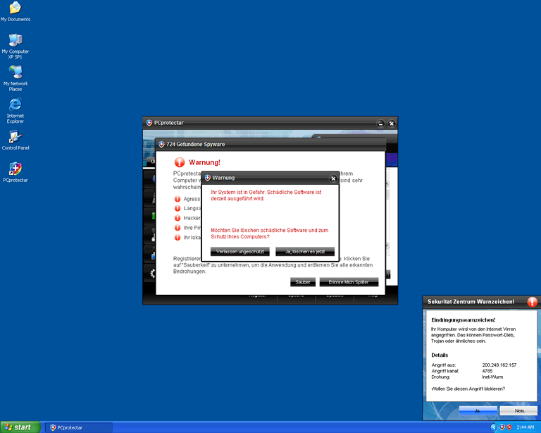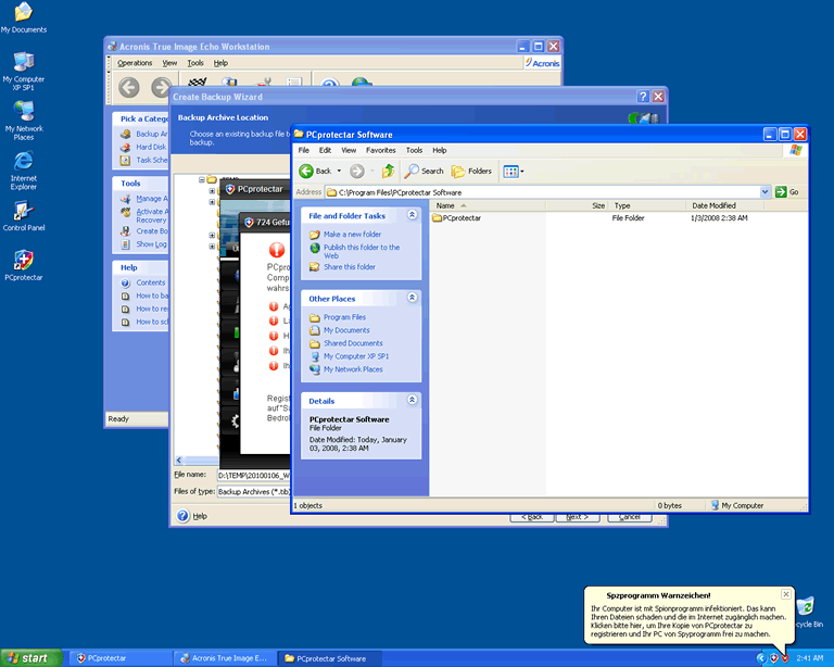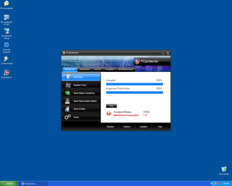 PCprotectar employs scare tactics to persuade users into purchasing its "full" or "licensed" version. The scare tactics involve the running of fake system scans and the display of bogus virus alerts and pop-up windows. Users should ignore all notifications displayed by PCprotectar; PCprotectar does not have the ability to identify or eliminate any type of computer malware.![]()