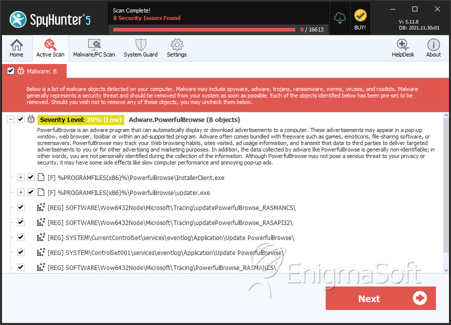 EnigmaSoft Threat Scorecards are assessment reports for different malware threats which have been collected and analyzed by our research team. EnigmaSoft Threat Scorecards evaluate and rank threats using several metrics including real-world and potential risk factors, trends, frequency, prevalence, and persistence. EnigmaSoft Threat Scorecards are updated regularly based on our research data and metrics and are useful for a wide range of computer users, from end users seeking solutions to remove malware from their systems to security experts analyzing threats.
