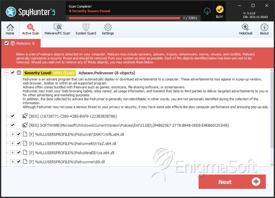 SpyHunter Detects & Remove Psdrunner