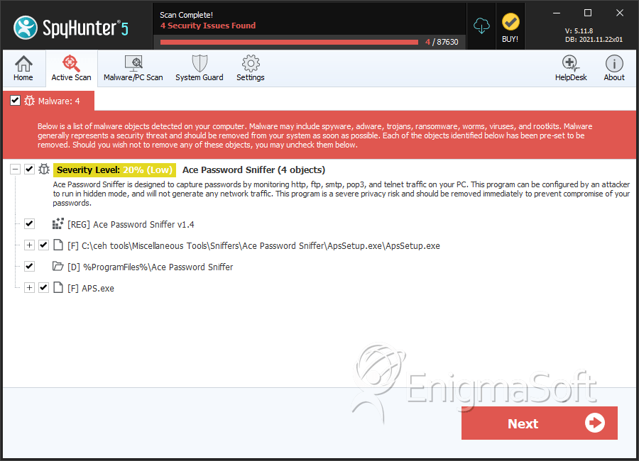 SpyHunter detecta e remove Ace Password Sniffer