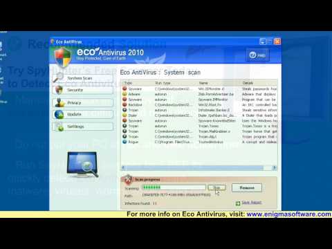 O Eco Antivirus (ou Eco AV) é um programa anti-vírus que pertence à família FakeXPA e que, supostamente, tenta preservar o ambiente. Não se deixe enganar, o Eco Antivirus é, na verdade, um aplicativo de segurança nocivo, que convence os usuários a comprá-lo, afirmando que uma parte dos fundos será usado em benefício da mãe terra. O Eco Antivirus exibe falsos resultados de varredura, mensagens de aviso e pop-ups, a fim de assustar os usuários e faze-los crer que os seus computadores estão infectados por múltiplos parasitas. Todas as recomendações para que se compre o Eco Antivírus não são confiáveis; o Eco anti-vírus não consegue detectar nem remover quaisquer ameaças de computador. Os usuários devem é usar um instrumento de segurança legítimo, para remover o Eco Antivirus e quaisquer outros parasitas existentes.