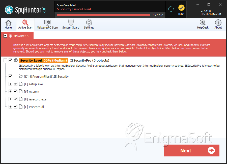 SpyHunter detecta e remove IESecurityPro