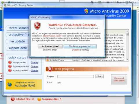 Dica: Ligue o som e assista o vídeo usando a tela inteira para entender melhor como o Micro Antivirus 2009 infecta um computador. Esse vídeo contém teclas que podem ser clicadas.
