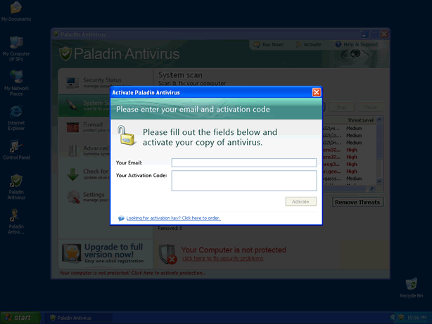 O Paladin Antivírus é um aplicativo anti-virus prejudicial distribuído por Trojans que podem introduzi-lo sorrateiramente dentro de um computador, sem o conhecimento ou a permissão do usuário. Uma vez dentro de um PC, o Paladin Antivírus vai lançar uma falsa varredura de sistema, e afirmar ter detectado numerosas ameaças de computador, que só poderão ser removidas pela sua "versão completa".