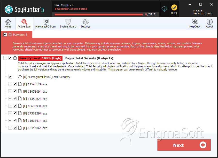 SpyHunter detecta e remove Total Security