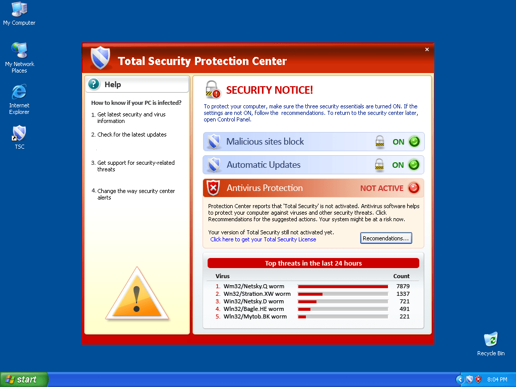 O Total Security, um clone do Antivirus 360, é um programa anti-spyware nocivo, geralmente instalado no sistema de computador dos usuários, por um Trojan ou por outros métodos maliciosos. Ele tenta engana-lo, para convence-lo a comprar a sua versão completa e paga, usando táticas de intimidação. O Total Security, em primeiro lugar, lhe oferece uma varredura online gratuita do seu computador. Essa varredura simulada informa inúmeras infecções que não existem. Falsos alertas de segurança e popups também serão exibios. E para remover essas infecções informadas, ele diz que você deve comprar a versão completa do seu aplicativo. O Total Security é um programa nocivo, que deve ser removido sem hesitação.![]()
