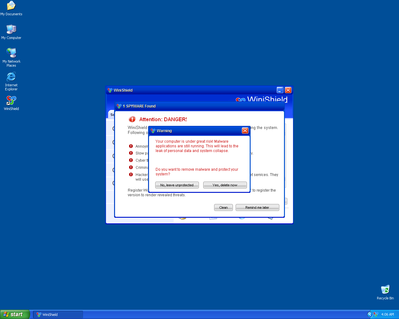 Falsos avisos, mensagens de segurança e varreduras de sistema, fazem parte do esquema do WiniShield, para levar os usuários a comprar o programa. Porque WiniShield pode ser capaz de carregar na inicialização do Windows, é aconselhável utilizar uma ferramenta de remoção confiável, que seja capaz de detectar e remove-lo completamente.