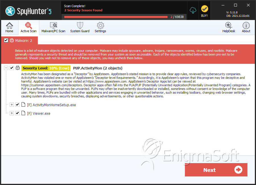 SpyHunter Detects & Remove PUP.ActivityMon