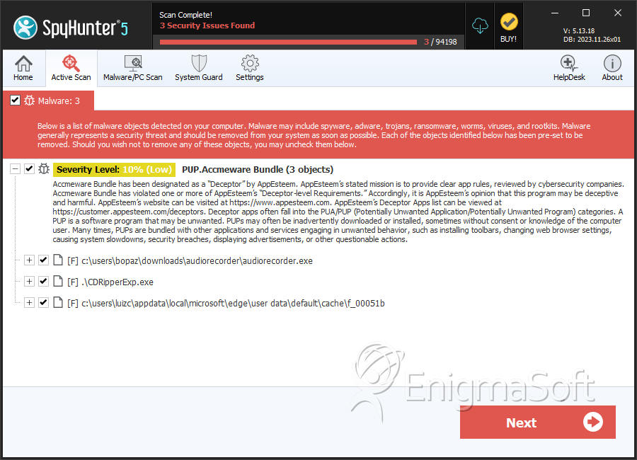 SpyHunter Detects & Remove PUP.Accmeware Bundle