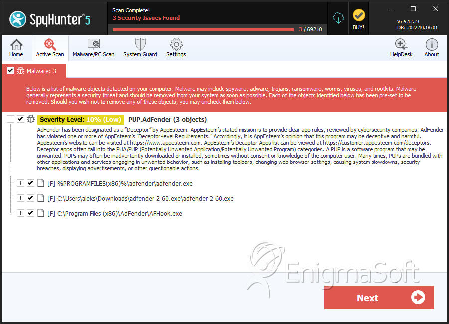 SpyHunter Detects & Remove PUP.AdFender