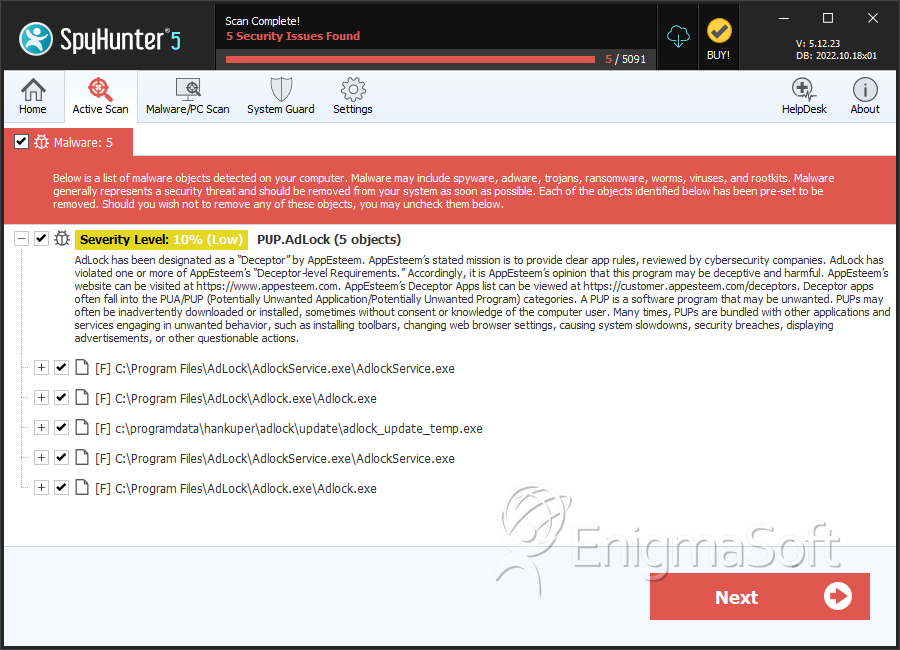 | 1. | AdlockService.exe | 925418076052a5746426e6dde55dc16f | 23 |