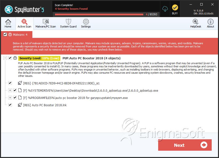 SpyHunter Detects & Remove PUP.Auto PC Booster 2018