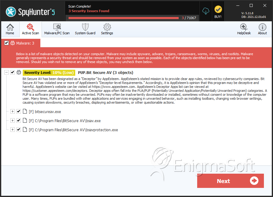 SpyHunter Detects & Remove PUP.Bit Secure AV