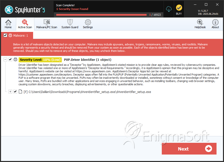 SpyHunter Detects & Remove PUP.Driver Identifier